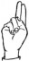 На ћирилици написано БЛАЖА БАТОЋАНИН састоји се из 14 слова [?]. Исписано ћириличном једноручном азбуком за глувонеме: